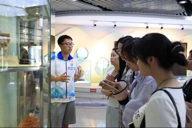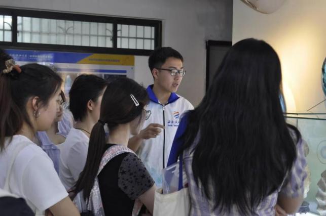 地科院輔導(dǎo)員劉肖老師致歡迎辭,向西南交通大學(xué)力學(xué)與航空航天學(xué)院、成都中醫(yī)藥大學(xué)臨床醫(yī)學(xué)院師生表示熱烈歡迎,并闡述了活動(dòng)的背景與教育初衷。隨后,學(xué)院“擲地有聲”地質(zhì)科普宣講團(tuán)成員結(jié)合地質(zhì)展廳內(nèi)的標(biāo)本展開(kāi)講解。從標(biāo)本的地質(zhì)來(lái)源、形成時(shí)期到背后的科學(xué)意義,宣講團(tuán)成員逐一解讀,帶領(lǐng)師生們揭開(kāi)自然造物的神秘面紗,讓大家深入了解地質(zhì)科學(xué)的魅力。