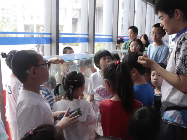 研學(xué)活動(dòng)中,擲地有聲宣講團(tuán)成員、2023級(jí)資源勘查工程專業(yè)廖航同學(xué),立足展廳特色展品,通過花崗巖、頁巖等典型巖石標(biāo)本,結(jié)合展件的紋理、色澤與構(gòu)造特征,用通俗易懂的語言講述巖石的形成過程、演化故事及在能源領(lǐng)域的重要意義。他將晦澀難懂的地質(zhì)學(xué)知識(shí)轉(zhuǎn)化為活潑生動(dòng)的趣味故事,引發(fā)了孩子們"巖石會(huì)說話嗎"等充滿想象力的追問。