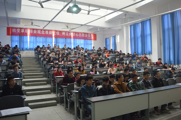 會上,肖友平首先向與會大學畢業生分析了當前社會形勢下大學生的就業形勢及職場現狀,多方面闡述了當前就業形勢的嚴峻。他介紹了最近將會來校招聘及就業中心組織的一些企業的招聘情況,希望同學們有針對性地做好專用應聘書及相關知識準備。他以幽默風趣的言談,以眾多的就業實例告訴同學們,剛出社會找工作需以一種“鍛煉自己,磨練自己”的心態去就業,讓與會的同學感觸頗深。他講到面對當前的就業形勢也不要過分的緊張,現階段需加強專業知識及技能培養,做好人生規劃,樹立正確的就業觀和擇業觀,調整自己的職業理想。