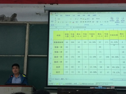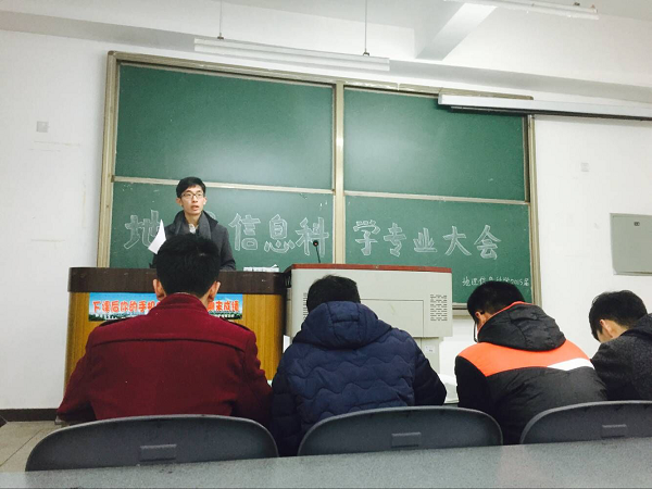 與此同時,在另外兩間教室里,2015級地理信息科學專業與2014級全體學生也在召開著自己的專業大會。輔導員通過為大家進行了上一學期學分績點與四級成績的分析。通過同專業不同班之間、院內不同專業之間以及我院與其他院之間的成績比較與原因分析,讓同學們對自己的學習有了更清晰的了解,對自己所處的位置有了更深刻的認識。