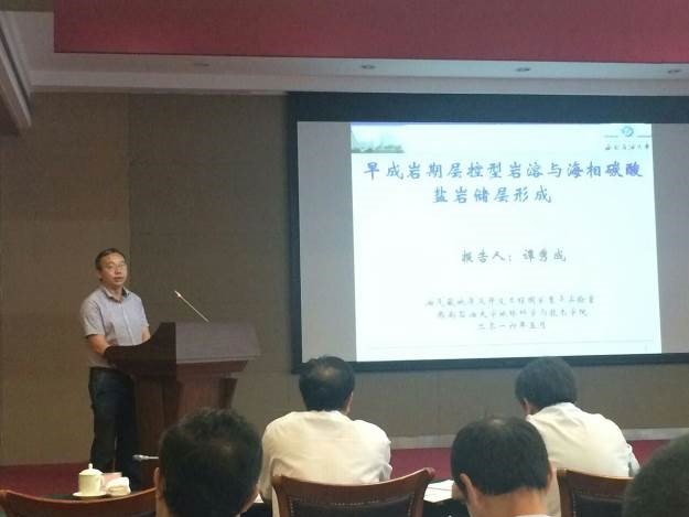2016年5月27日至29日,由中國地質學會石油地質專業委員會主辦,中國石化石油勘探與開發開發研究院、國家973計劃項目及石化聯合基金聯合承辦的《海相碳酸鹽巖儲層成因機理與預測方法》學術研討會在北京舉行。前中國石化集團總公司副總經理牟書令教授、中國石化高級副總裁馬永生院士、康玉柱院士、副總地質師金之鈞院士、中國地質大學郝芳院士集團公司油田事業部、勘探分公司郭旭升總經理及基金委等相關領導出席了會議。會議50個報告就深埋優質碳酸鹽巖儲層成因機理、白云巖化機理、微生物白云巖、碳酸鹽巖儲層綜合預測等相關難點和熱點問題展開研討。我院譚秀成教授做了《早成巖期層控型巖溶與海相碳酸鹽巖儲層形成》的大會特邀報告,提出了“開放體系控儲、深埋保持”是深層規模性碳酸鹽巖優質儲層形成的主要機理、建立了早成巖期層控型巖溶的識別標志和模式、闡明了其與碳酸鹽巖儲層形成的關系。