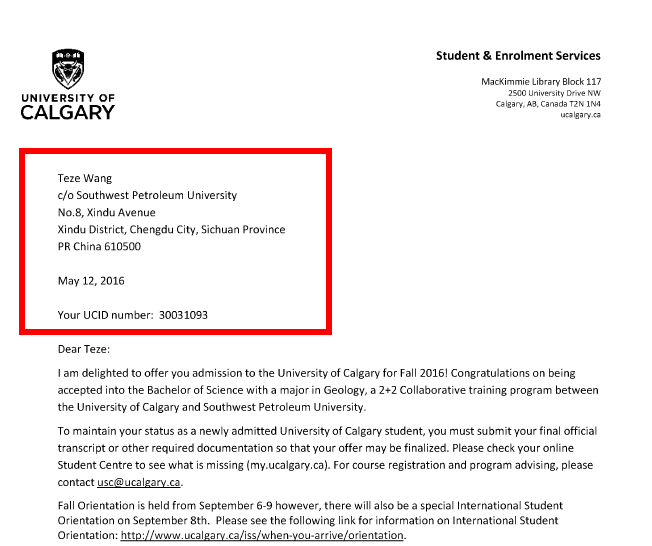 | 王特澤收到的卡爾加里大學(xué)的offer |