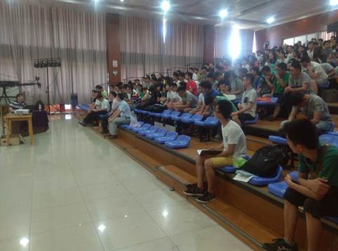 6月16日下午,地科院在學生活動中心201大廳舉行了2017屆畢業生考研宣講會,旨在為2013級同學在考研與就業這兩條道路作出正確決定提供思路。院黨委副書記范起東,副院長廖明光,輔導員李明科,班主任歐陽田,2012級優秀學生代表王巖、王俊康以及2013級全體同學出席了本次大會。