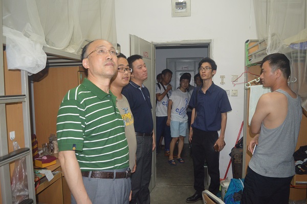 朱江書記一行走訪男生寢室。老師們首先對同學們的順利畢業表示祝賀。在走訪過程中,朱書記詳細詢問了畢業生的畢業去向、就業情況、行程安排、未來打算以及行李托運等事宜。
