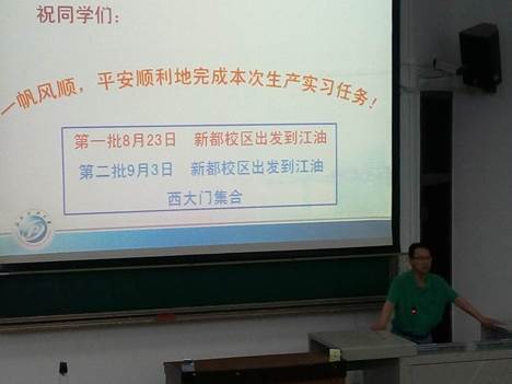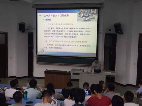 會上,楊輝廷老師對實習安排作了說明,特別強調了實習期間的安全問題,希望同學們要牢固樹“安全第一”的思想,切實提高安全防范意識,嚴格遵守紀律,文明禮貌,團結友愛,密切合作,圓滿完成生產實習任務。并且就實習期間的具體事宜做出了詳細的安排,一一解答了同學們的疑問。