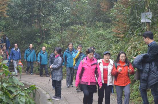為引導(dǎo)地球科學(xué)技術(shù)學(xué)院教職工樹立健康積極的生活理念,增強(qiáng)學(xué)院的凝聚力和向心力,增進(jìn)學(xué)院教職工的友誼,2016年12月3日地科院工會(huì)組織教職工在青城山舉行了健康步道鍛煉活動(dòng)。此次健康徒步活動(dòng)的路線為全長(zhǎng)約6.5公里的康道。辛勤的老師們暫別手上的工作,與大自然來一次親密的約會(huì)。