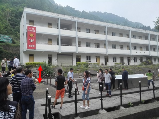 汶川地震時處于斷裂帶的白鹿中學教學樓整體抬升3米而保持結構完整,堪稱奇跡