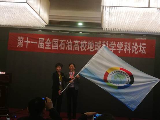 劉向君院長從西安石油大學地球科學與工程學院王鳳琴院長手上接過會旗承接下一屆論壇
