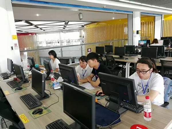 長江大學校園外湖光山影,水天一色,環繞著美麗靜謐校園。但是參賽隊員并無閑暇留意窗外的美景,因為機房內進行著激烈的競爭,大腦在飛速運轉,手指如花地敲擊著鍵盤。很快進入到4月21下午的答辯環節。西南石油大學代表隊入場,10分鐘,彭凡同學沉靜流暢的答辯,贏得評委專家頻頻點頭,各校帶隊老師竊竊私語,不由得低聲慨嘆:西南厲害!回答問題環節,四位同學也沒留下任何遺憾。