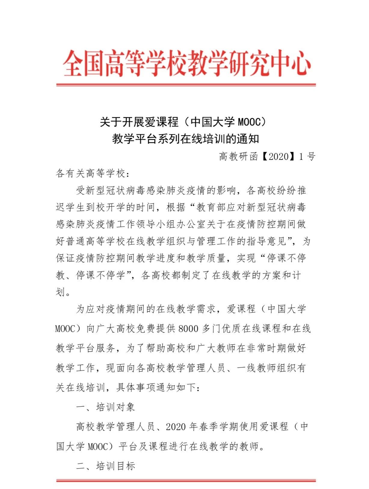 (全國高等學校教學研究中心也下達了愛課程(中國大學MOOC)在線培訓通知,建附件2)