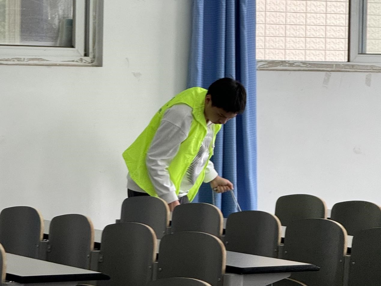 下午一點正是休息的寶貴時間,但這并沒有成為志愿者們的阻礙,他們早早在集合地點待命,身著綠色馬甲,領(lǐng)取清掃工具為維持校園整潔的環(huán)境出一份力。在清掃過程中,志愿者們分為三個小組,在地科院青志協(xié)委員和部長的帶領(lǐng)下,志愿者們有序地將教學(xué)樓里的教室和走廊打掃干凈。盡管學(xué)習(xí)了半天還沒來得及睡午覺導(dǎo)致身體些許疲憊,志愿者仍專心致志拿著手中的工具不放過每一?;覊m和垃圾,發(fā)揮出了一如既往的高水準。掃出一片干凈整齊的校園環(huán)境。