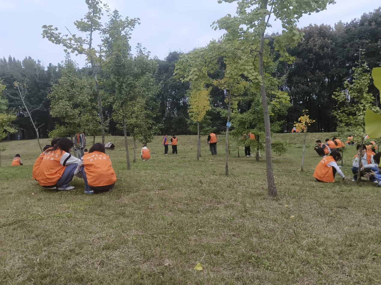 午后的陽光透過樹葉灑在地面上,形成斑駁的光影,為這片感恩林增添了幾分生機與活力。同學們身著統一的志愿者服裝,手持清潔工具,滿懷熱情地投入到維護活動中。