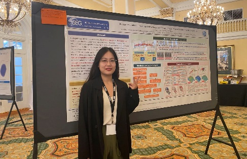 此外,我院博士研究生楊冉作了題為《Pressure and saturation variations derived from exact Zoeppritz equation inversion using time-lapse seismic data》的報告,展示了利用時移地震數據監測油氣藏壓力和飽和度變化的最新研究成果,為實現精確的油藏動態描述和監測提供了創新思路。