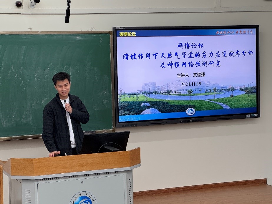 2024年11月19日14:30~16:30,為深入貫徹習(xí)近平新時(shí)代中國(guó)特色社會(huì)主義思想和黨的二十大精神,落實(shí)習(xí)近平總書記關(guān)于弘揚(yáng)教育家精神和科學(xué)家精神的重要指示,全面提升研究生的科研素養(yǎng)與創(chuàng)新能力,西南石油大學(xué)“研究生學(xué)術(shù)科技文化月”系列主題活動(dòng)之夢(mèng)溪·科創(chuàng)碩博論壇第二期學(xué)術(shù)報(bào)告在明辨樓C205成功舉辦。本次論壇主題為“智慧能源啟新思,研學(xué)精進(jìn)攀高峰”,旨在搭建跨學(xué)科學(xué)術(shù)交流平臺(tái),促進(jìn)研究生之間的學(xué)術(shù)對(duì)話與思維碰撞。論壇吸引了多個(gè)學(xué)院的學(xué)生共同參與,四位研究生分別從馬克思主義理論、法學(xué)及石油工程等學(xué)科領(lǐng)域展開了精彩的學(xué)術(shù)分享。