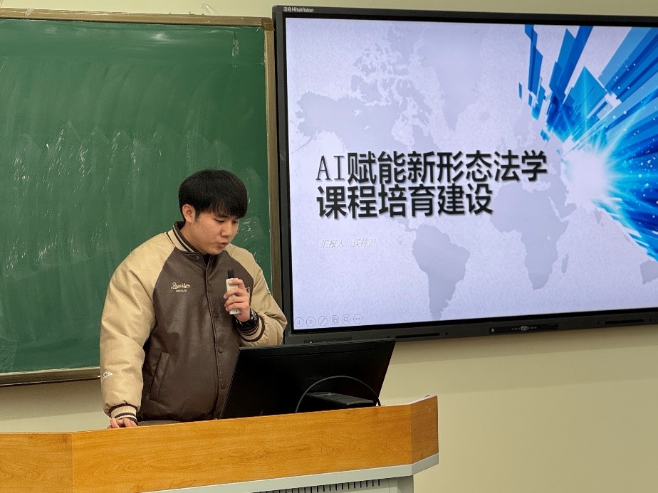 隨后,法學(xué)院碩士研究生侯棟尹以《AI賦能新形態(tài)法學(xué)課程培育建設(shè)》為主題,探討了人工智能技術(shù)在法學(xué)教育領(lǐng)域的深度應(yīng)用。他詳細(xì)分析了AI技術(shù)引入法學(xué)課程的動(dòng)因及實(shí)現(xiàn)路徑,并提出了一套優(yōu)化法學(xué)教育的具體策略,包括課程設(shè)計(jì)、智能工具輔助教學(xué)及跨學(xué)科知識(shí)融合,并展望了未來(lái)法學(xué)教育在技術(shù)賦能下的創(chuàng)新方向。