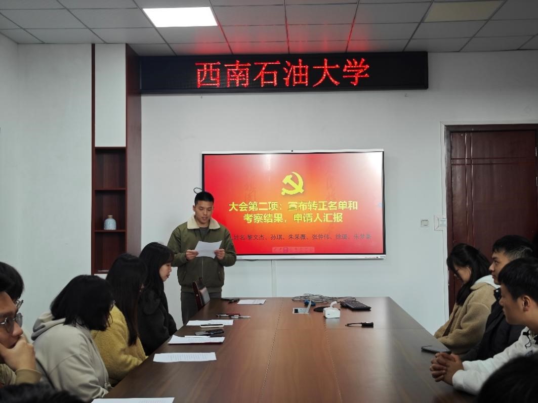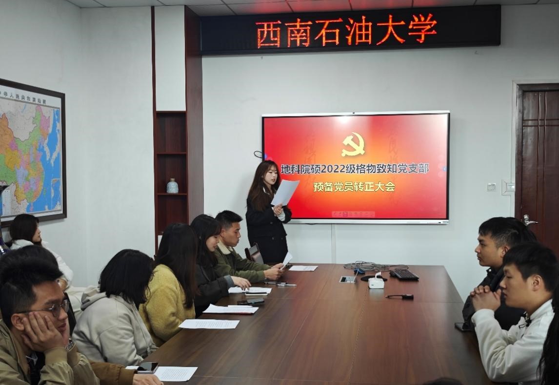 11月20日下午3時,地科院碩士生2022級格物致知黨支部在明辨樓A402召開預備黨員轉正大會。黨支部全體正式黨員、預備黨員及轉正申請人參會。 本次議題主要討論是否同意黎文杰、孫琪、朱采薇、張仲偉、徐璐、朱夢豪6位中共預備黨員按期轉正的問題,會議由支部副書記池皓詣主持。