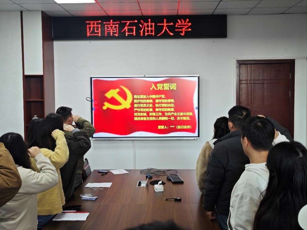 大會伊始,奏國際歌,行注目禮。會議按照黨員發展程序,由池皓詣副書記宣布轉正名單,申請人依次上臺匯報了自己對黨的認識、入黨動機、本人履歷以及預備期的現實表現,并正式向黨支部提出轉正申請。入黨介紹人分別介紹了申請人的優點與不足,指明了今后改進的方向,并對其能否轉正發表了意見。隨后,申請人回避,與會的正式黨員就轉正申請人是否能按期轉正這一問題進行了充分討論,并舉手表決。最終黎文杰、孫琪、朱采薇、張仲偉、徐璐、朱夢豪6名預備黨員的轉正申請得到了全票通過。宣讀表決決議后,全體黨員莊嚴宣誓,重溫入黨誓詞。