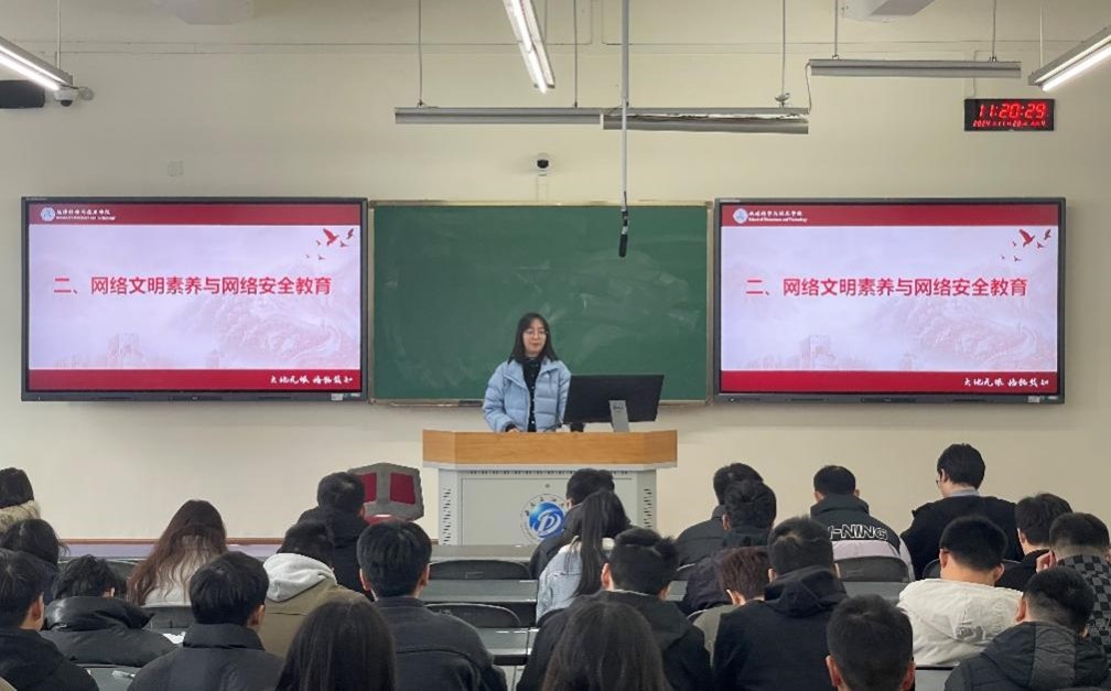 此外,面對日益復雜多變的網絡環境,必須加強自身的網絡行為規范,時刻保持清醒頭腦,將網絡安全意識內化于心、外化于行,成為網絡空間正能量的傳播者和網絡文明的守護者。史格老師結合當前網絡安全形勢,深入剖析了網絡文明素養養成及行為規范,她強調:“網絡不是法外之地,一個個鮮活的案例都是一次次響亮的警鐘。”