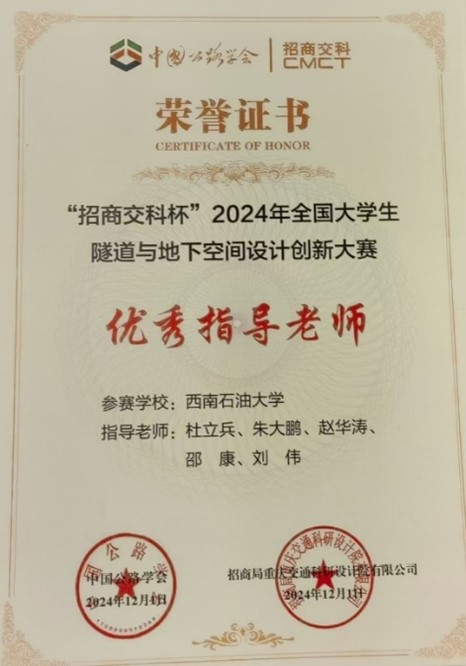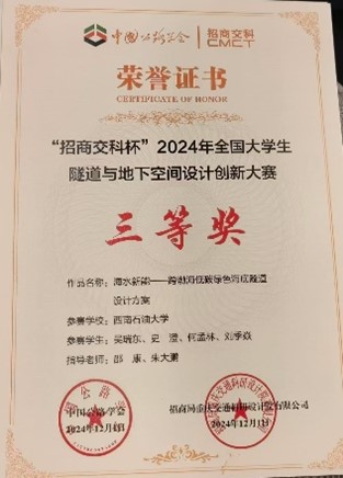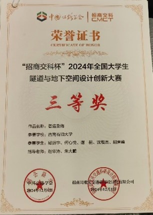 我校榮獲2024全國隧道與地下空間設計創新大賽優秀組織獎