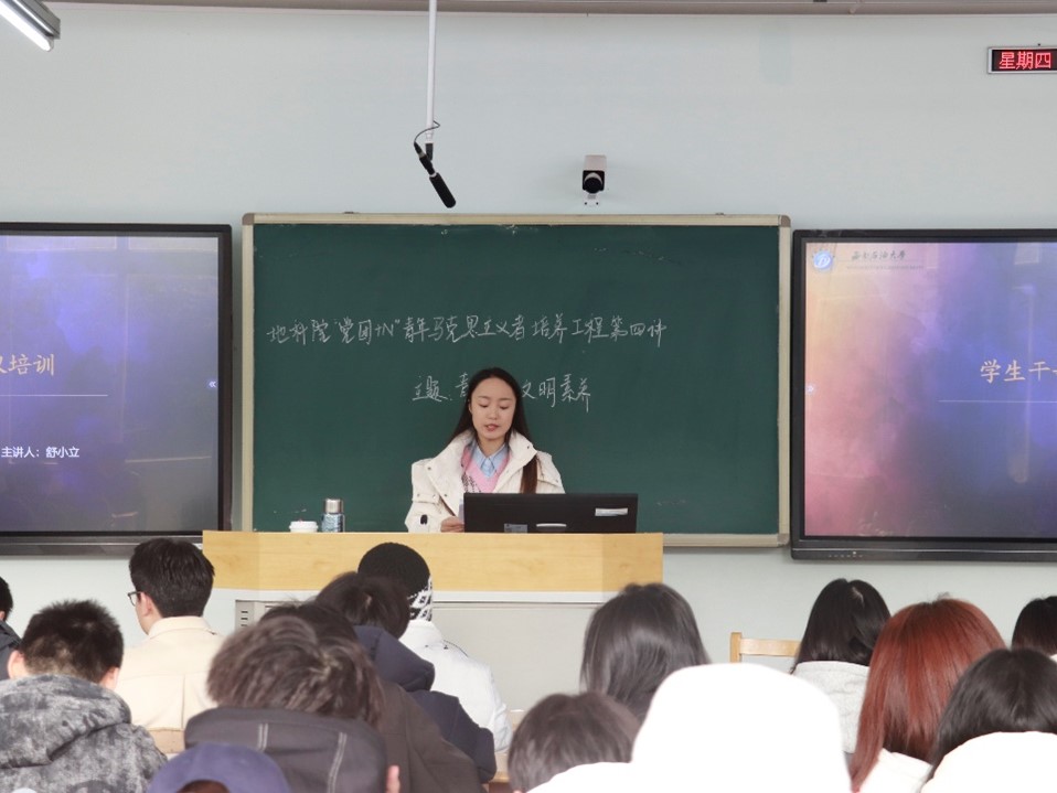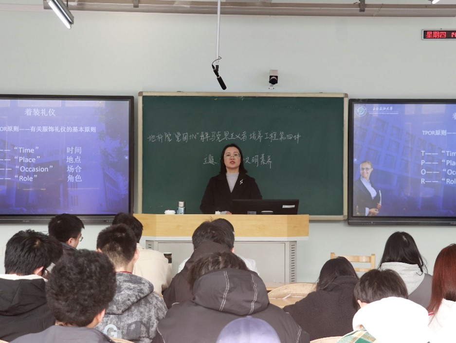 為提升學(xué)生干部的個人形象和素養(yǎng)以及強(qiáng)化其禮儀意識,展現(xiàn)學(xué)工隊(duì)伍更專業(yè)、更優(yōu)雅的風(fēng)采。12月5日下午,主題為《青年干部的文明素養(yǎng)》的青馬工程培訓(xùn)會議于思學(xué)樓A216順利召開。本次會議由心理發(fā)展與服務(wù)中心副主任舒小立老師主講,由地科院兼職輔導(dǎo)員吳小菊主持,青馬工程培訓(xùn)班全體成員參加了此次培訓(xùn)。