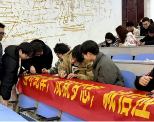同學們進行了誠信宣誓,各位同學在誠信考試的橫幅上簽字,承諾做到遵守紀律、誠信應考。