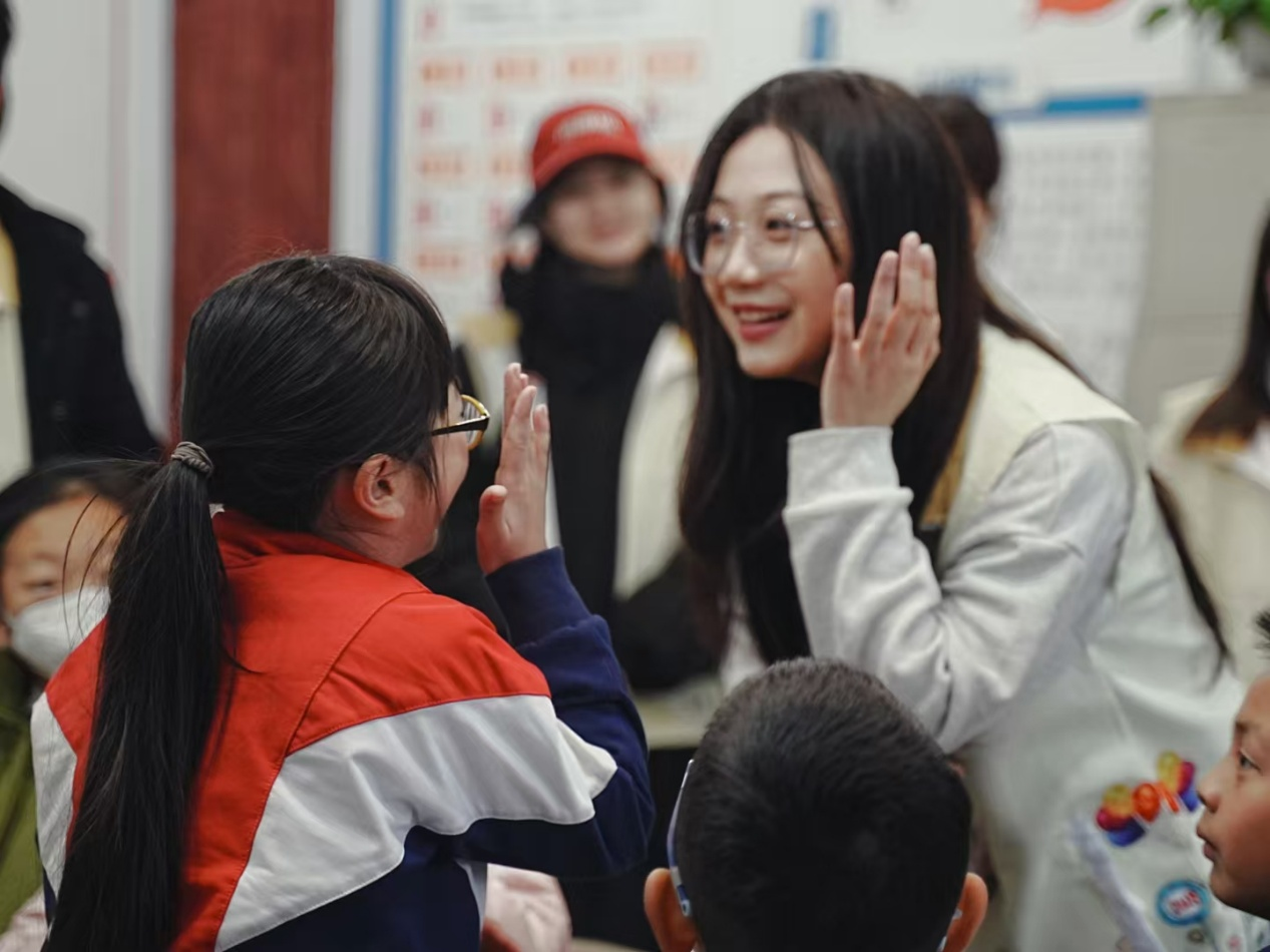 志愿者王文靜與同學互動