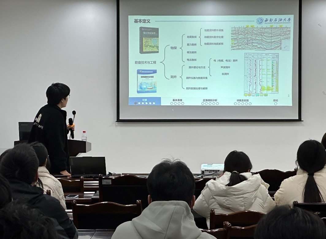 12月6日晚8:00,西南石油大學SEG學生分會首次舉辦的學術交流講座在明辨樓D404舉行。本次講座的主題為“人工智能在河流相砂體識別中的應用”,由地質資源與地質工程專業2024級博士研究生張澤鑫擔任主講。