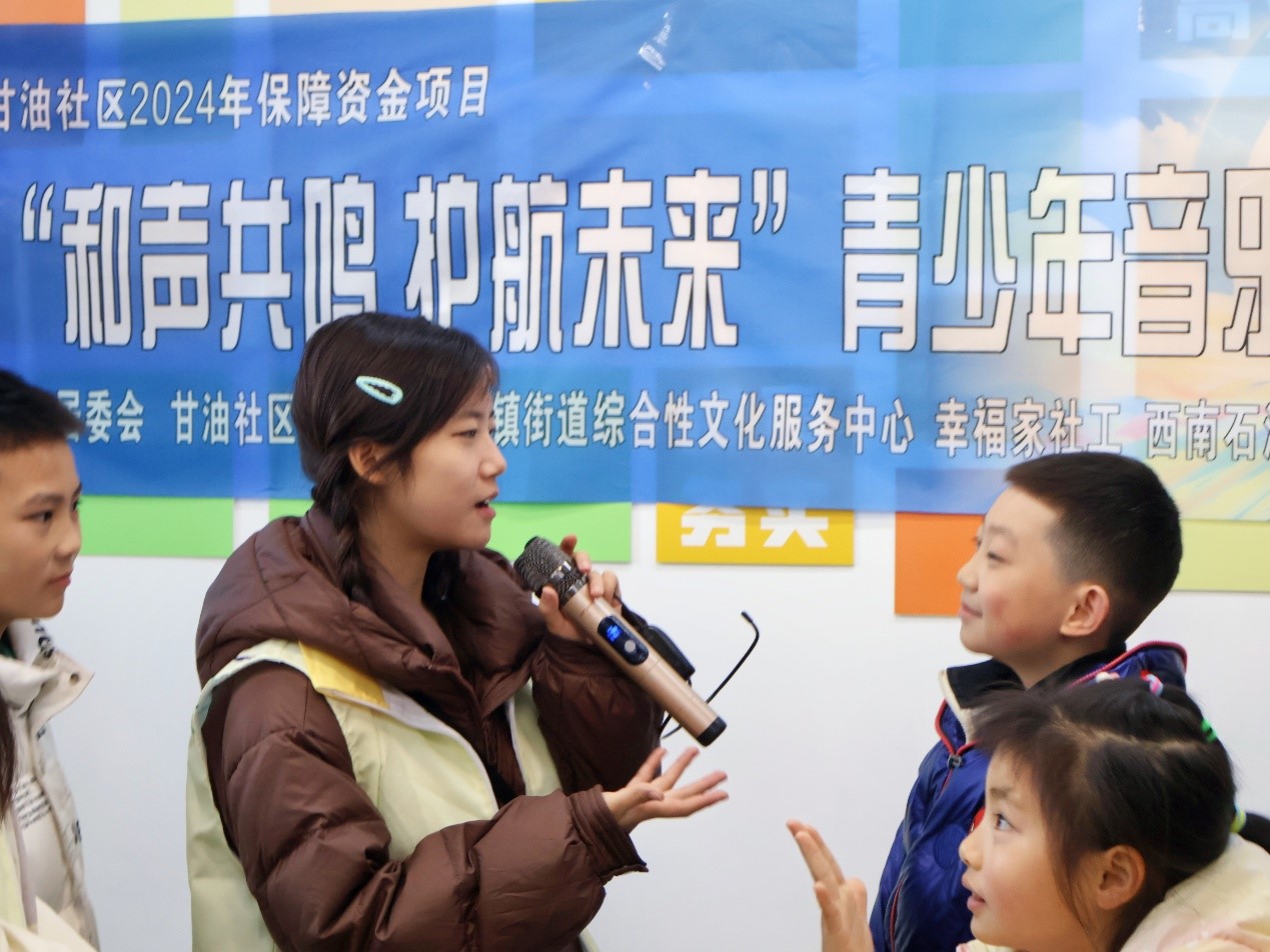 為深入學(xué)習(xí)貫徹習(xí)近平新時(shí)代中國(guó)特色社會(huì)主義思想,持續(xù)助力社區(qū)青少年心理健康,幫助他們克服體像煩惱,12月15日,西南石油大學(xué)和聲共鳴公益團(tuán)隊(duì)赴天回街道甘油社區(qū)開展“和聲共鳴·護(hù)航未來”青少年音樂團(tuán)輔課堂第二課。西南石油大學(xué)和聲共鳴公益團(tuán)隊(duì)主辦,天回街道甘油社區(qū)黨委、居委會(huì),甘油社區(qū)關(guān)工委,天回街道綜合性文化服務(wù)中心,幸福家社工承辦。