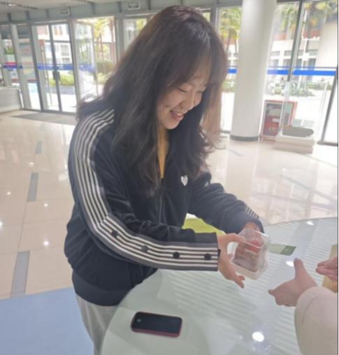 “沒想到在實驗室熬夜改論文的日子里,還能收獲專屬甜蜜驚喜”。2023級地質資源與地質工程碩士生常佳惠同學捧著蛋糕笑容燦爛。女生們在鏡頭前留下明媚笑顏,部分同學更主動將蛋糕分享給課題組導師,將溫暖傳遞至整個學院。