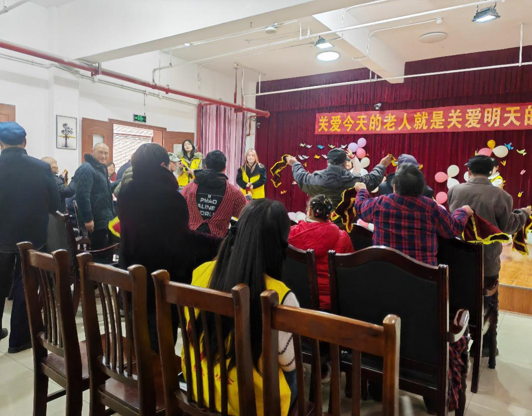 表演過程中,志愿者們還走到老人中間,與他們親切互動。有的志愿者拉著老人的手,耐心傾聽他們講述過去的故事;有的則為老人輕輕按摩肩膀,緩解他們身體的疲勞。這種近距離的交流互動,讓老人們感受到了實實在在的關懷。