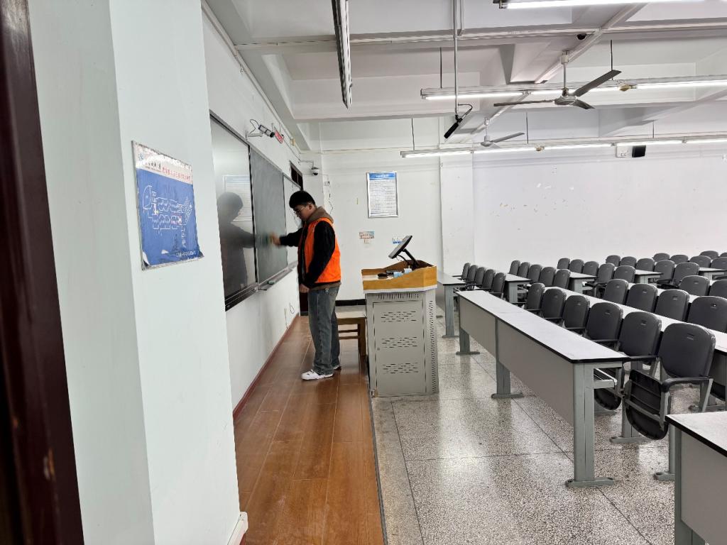 活動當天,志愿者們早早集合,分成若干小組,分別負責不同樓層的清潔工作。他們手持掃帚、抹布、垃圾袋等工具,對教學樓走廊、樓梯、教室門窗及公共區域進行了全面清掃。盡管天氣寒冷,但志愿者們熱情高漲,分工明確,配合默契。有的同學仔細擦拭窗臺和桌椅,有的同學認真清理地面垃圾,還有的同學負責整理教室內的書籍和雜物。經過半小時的辛勤勞動,教學樓煥然一新,窗明幾凈,為師生們營造了一個更加整潔舒適的學習環境。