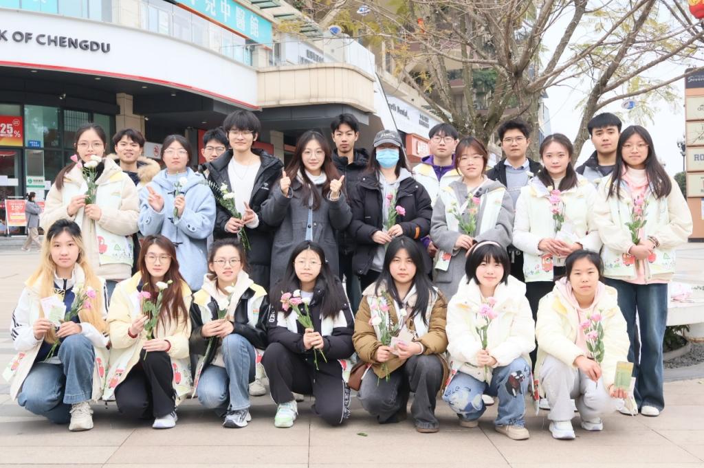 知源愛心協會與大學生廉潔文化研學社合辦“送你一朵小紅花”三八婦女節社區送花活動