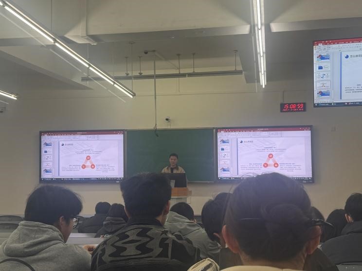 朱原老師以“創新思維與實戰方略”為主題展開系統講解。通過對國創賽備賽要點解析,梳理中國國際大學生創新大賽發展脈絡,深度解析賽事組別設置與評審維度;并從做項目的基本邏輯即項目是什么、為什么做項目和怎么做項目分別開展講述,最后通過結合往屆金獎項目,生動詮釋了做好一個真正的好項目需要保持突破常規的想象力,更要注重技術轉化的可行性。在互動環節,朱原老師針對學生團隊提出的問題作出專業性的解答。