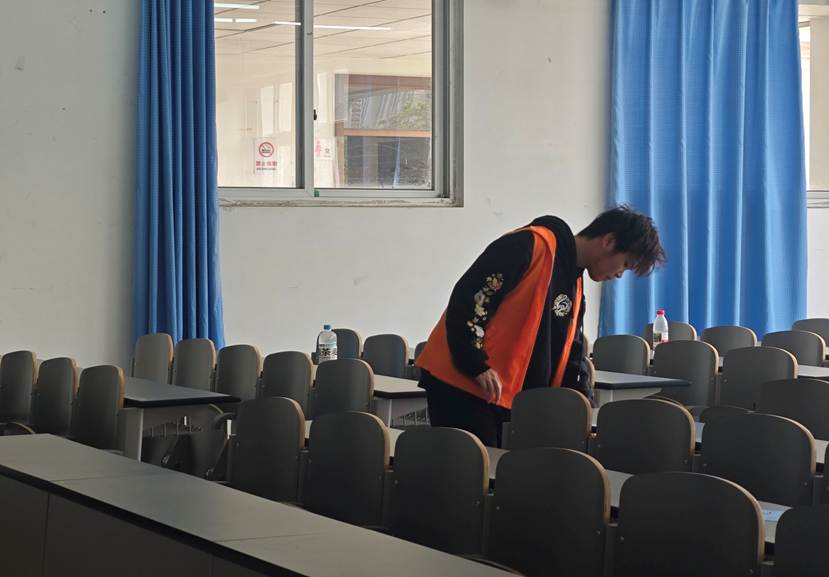 2025年4月3日,志愿者們?cè)缭缂显谒紝W(xué)樓A區(qū)大廳。他們分工明確,有的負(fù)責(zé)清掃教室地面,認(rèn)真清理每一個(gè)角落的紙屑、灰塵;有的擦拭黑板、講臺(tái),將粉筆灰擦拭得干干凈凈;還有的清理走廊和樓梯,不放過(guò)任何一處衛(wèi)生死角。在清掃過(guò)程中,志愿者們不怕臟、不怕累,充分展現(xiàn)了奉獻(xiàn)精神。