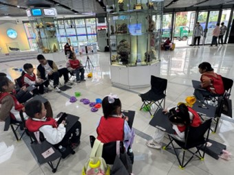 研學(xué)活動在青少年對地球科學(xué)懷揣的好奇與期待中拉開序幕,巖石展廳內(nèi)豐富的巖石標(biāo)本和礦物珠寶引發(fā)孩子們駐足觀看,在志愿者的細(xì)致講解下,為他們打開了一扇通往科學(xué)的大門。從古老的化石到珍貴的礦物,孩子們直觀地感受到了地球數(shù)十億年的演變歷程。科普講解活動結(jié)束后,大家三兩成群,細(xì)心觀察展廳里的巖石標(biāo)本,并向志愿者詢問各類巖石相關(guān)的科學(xué)知識。