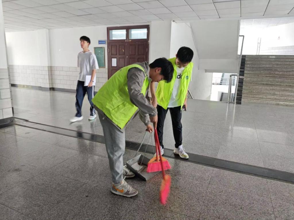 活動(dòng)中,志愿者們分工明確,配合默契。有的同學(xué)負(fù)責(zé)清掃地面,他們細(xì)心地掃去每一個(gè)角落的灰塵和紙屑;有的同學(xué)則負(fù)責(zé)擦拭門窗和桌椅,他們用力地擦去污漬,讓家具煥然一新;還有的同學(xué)負(fù)責(zé)整理教室內(nèi)的書(shū)籍和資料,將它們擺放得井井有條。在大家的共同努力下,思學(xué)樓的每一個(gè)角落都變得更加干凈整潔。