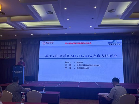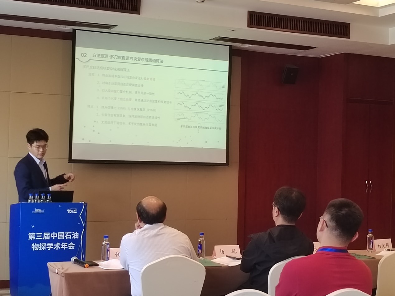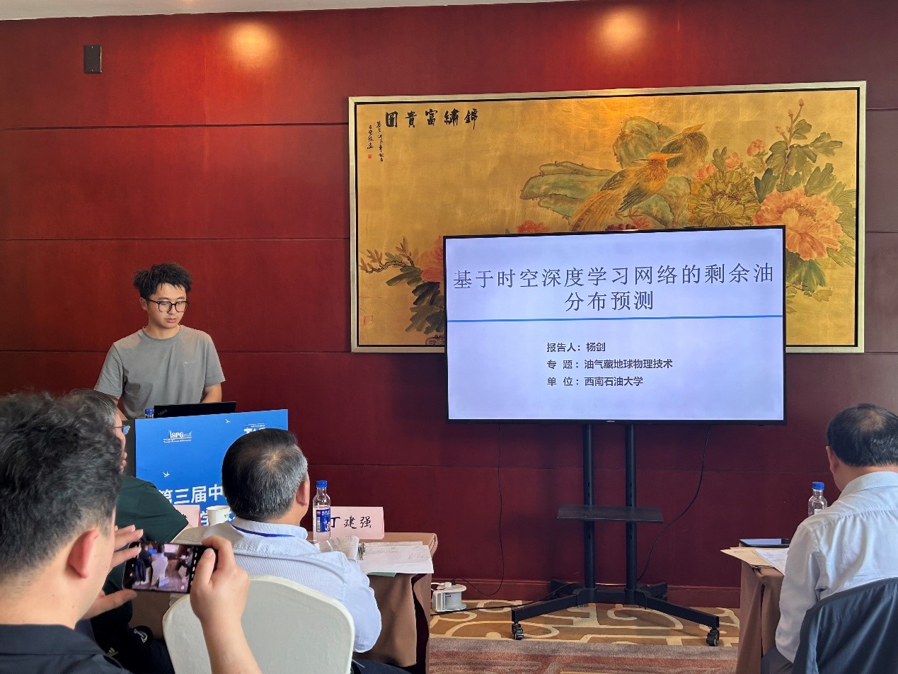 我院由學術院長黃旭日帶隊,組織博士研究生姜澤磊、吳藝婷、楊劍、楊圣、李浩源、崔曉慶以及碩士研究生袁詩博、牛超逸、胡凌峰、孫明、羅堃等學生參會交流。其中,袁詩博碩士就《水力壓裂微地震震級分析方法研究》作了口頭匯報交流;牛超逸碩士就《閾值曲波變換在地震數據分析中的應用研究》作了口頭匯報交流;胡凌峰碩士就《VTI介質Marchenko成像方法研究》作了口頭匯報交流;羅堃碩士則就《優勢通道智能識別方法》作了口頭匯報交流;楊劍博士則就《基于時空深度學習網絡的剩余油分布預測》作了口頭匯報交流。此外,姜澤磊博士、吳藝婷博士、楊圣博士、李浩源博士、崔曉慶博士和孫明碩士分別在各分會場以展板形式展示了其研究課題的階段性成果。