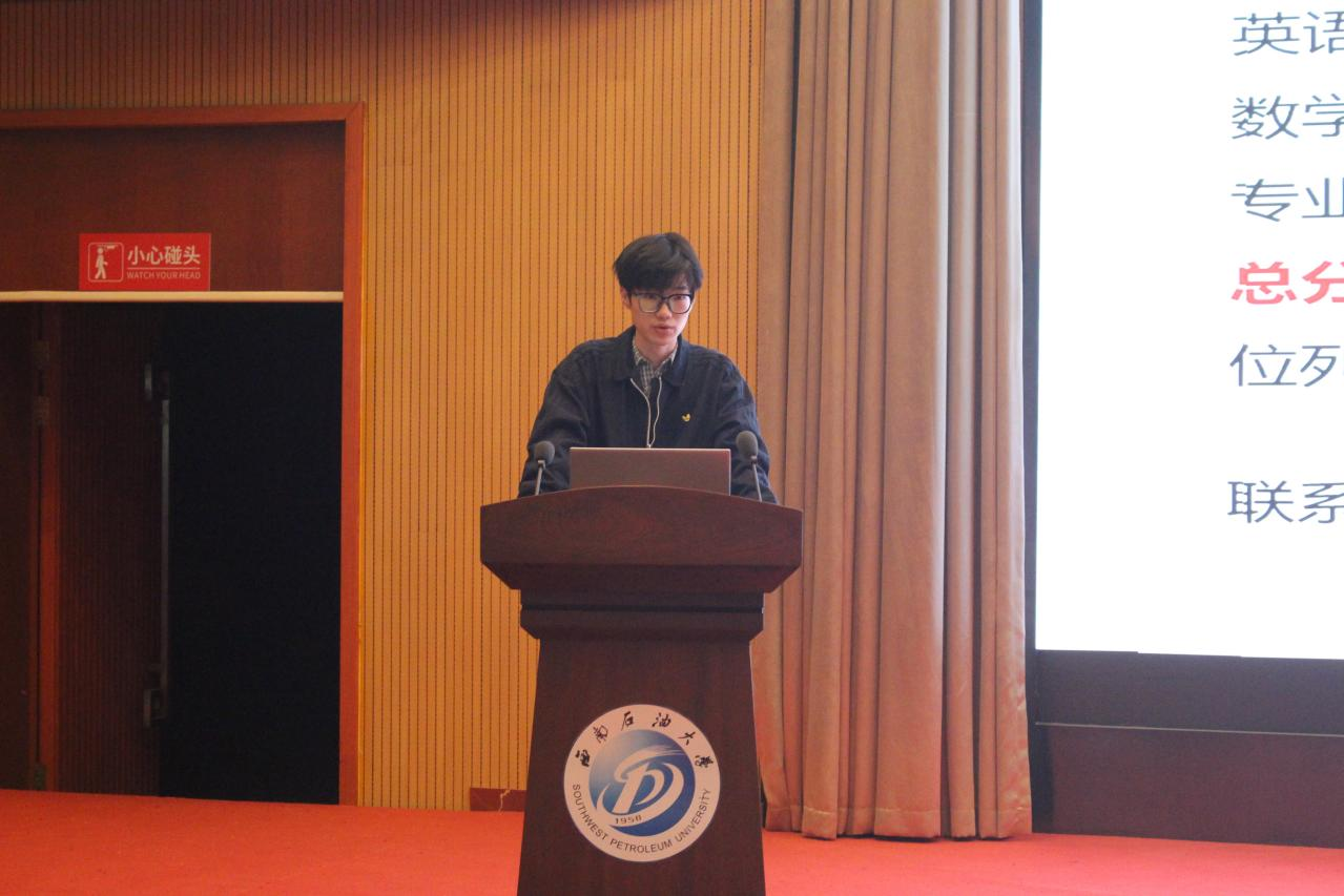 分享會上,來自不同專業(yè)的優(yōu)秀學(xué)長學(xué)姐依次上臺,結(jié)合自身經(jīng)歷分享考研心得。資源勘查工程2021級門澤鑫以專業(yè)第一的成績上岸,他強(qiáng)調(diào)“興趣驅(qū)動選擇”,結(jié)合自身對非常規(guī)油氣的研究熱情,詳細(xì)拆解了“政治刷課+數(shù)學(xué)刷題+專業(yè)課框架梳理”的復(fù)習(xí)體系。他特別提到,數(shù)學(xué)是考研關(guān)鍵科目,需注重基礎(chǔ)階段的知識積累和真題復(fù)盤,建議學(xué)弟學(xué)妹們合理安排時間,扎實(shí)掌握每一個知識點(diǎn)。