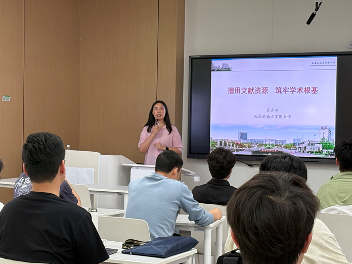 為助力師生高效利用學術資源、規(guī)范學術研究方法,西南石油大學圖書館于2024年5月8日下午15:00-17:00在明理樓A106報告廳舉辦“文獻檢索實戰(zhàn)指南”專題講座。本次講座由圖書館資深信息素養(yǎng)講師肖春平擔任主講人,吸引四十余名師生到場參與,現(xiàn)場互動熱烈。