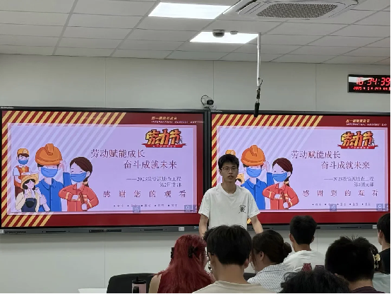 從“鐵人”王進喜到“當代愚公”李保國,從環衛工人到醫護工作者,團日活動中,同學們通過視頻和案例學習不同時代勞動者的奉獻故事?!皠趧記]有高低,每一份付出都值得尊重?!眻F支書須薇晗在“辛勤的勞動者”篇章中動情說道。經驗分享環節,趙藝黎同學分享了她的勞動經驗:“我們負責清掃思學樓區域,從節約用紙、分類垃圾到維護設備,我深刻體會到‘一水多用’‘人走燈熄’不僅是口號,更是對勞動者成果的尊重。勞動教育讓我們學會用雙手創造美好,也讓我更珍惜校園環境?!?/span>