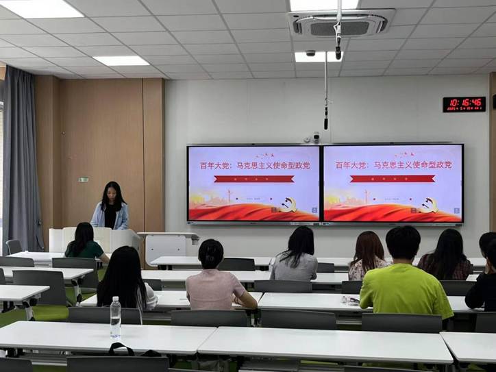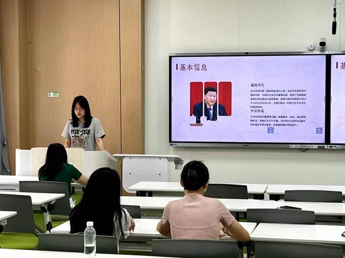 接著,楊家輝同學圍繞《百年大黨:馬克思主義使命型政黨》展開了深入分享。她以宏大的歷史視角,梳理了中國共產黨百年來的發展脈絡,從嘉興南湖紅船上的微光星火,到新時代偉大復興的璀璨星河,詳細闡述了黨如何在不同歷史階段踐行馬克思主義使命型政黨的責任與擔當。