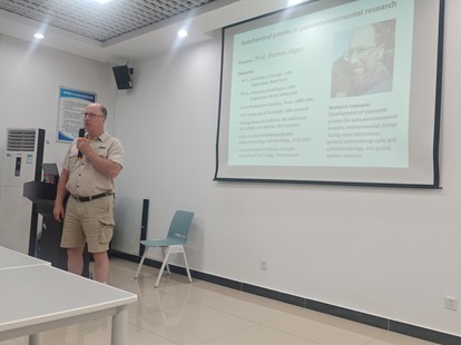 2025年5月15日下午16:00,國際著名的沉積地球化學家和古海洋學家、美國地質學會會士(GSAFELLOW)、美國辛辛那提大學教授、中國地質大學(武漢)特聘教授、成都理工大學柔性引進A類人才Thomas J.Algeo教授受邀到我院明辨樓D404為廣大師生帶來一場以“古環境研究中的地球化學指標”為題的講座,地球科學與技術學院部分老師與同學參加此次講座。