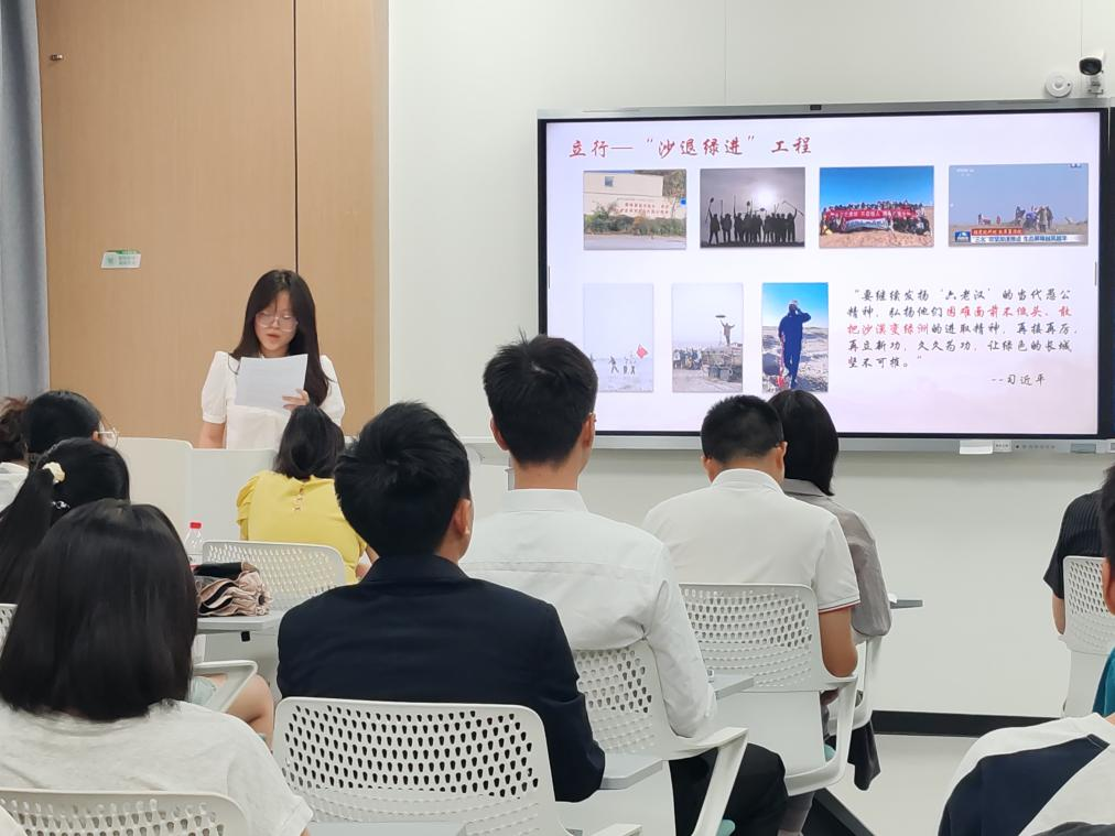 李雯以“立德、立學、立身、立行”為綱,回顧了從入黨積極分子到優秀黨員的蛻變歷程。綜測排名第一、推免本校深造的學術成績,與西北治沙公益中種下千株梭梭樹的行動交相輝映。“‘沙漠變綠洲’不僅是口號,更是我們向自然的莊嚴承諾!”