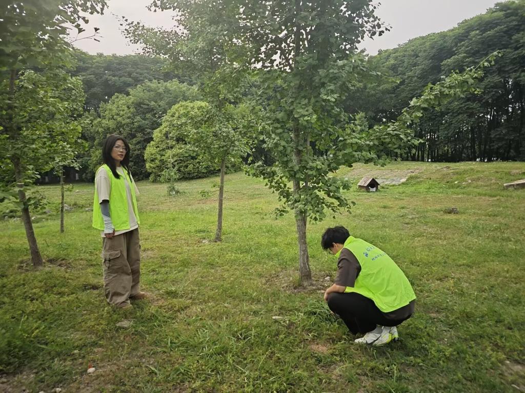 活動伊始,同學們有序地領取鐵鍬、水桶、剪刀等工具,迅速按照分工投入到維護工作中。負責樹木養護的同學,小心翼翼地為樹木松土、澆水,仔細檢查每一棵樹的生長狀況,用剪刀修剪掉多余的枝丫,讓樹木能夠更好地生長;清理雜草的同學,蹲在地上,徒手拔除林間的雜草,即便汗水濕透了衣衫,手上沾滿泥土,也毫不在意,依舊專注地清理著每一處角落。