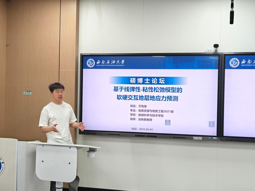 2025年6月4日9:00,地球科學與技術學院的三位博士孟凡、萬有維、焦世祥主講的碩博論壇在明辨樓C103成功舉行。本次論壇聚焦人工智能與能源工程交叉領域的前沿技術,三位博士分別就機器學習在測井曲線重構、軟硬交互地層地應力預測及核磁共振譜反演中的創新應用展開深度分享,吸引了眾多師生參與交流。