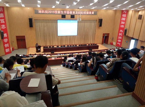 為了讓2015級新同學明確學校各項規章制度,遵守校內的教育教學秩序和生活秩序,盡快適應大學新生活,地科院邀請了學院教學辦公室張俊峰老師和唐興麗老師于9月25日下午3時在圖書館學術報告廳作新生學籍教育及校紀校規教育講座。2015級新生輔導員文雪和鄭帥出席了本次講座,地科院2015級全體新生參加了本次講座。