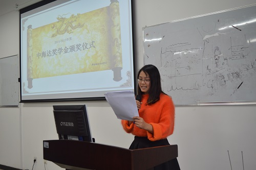 11月5日下午,西南石油大學地科院在明辨樓B412會議室舉行了中海達獎學金頒獎典禮。中海達成都公司總經理謝志海、地科院黨委書記朱江出席活動并為獲獎同學頒獎,地理信息系統12級輔導員趙琦寧以及各年級學生代表參加本次頒獎典禮。