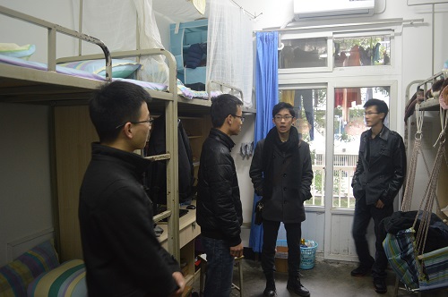 此次檢查主要是走訪各宿舍,與學生加強交流,排查安全隱患。檢查過程中,院領導和輔導員與同學們親切交流,了解學生的期末考試情況以及各寢室學生回家的情況,同時提醒沒回家的同學要注意安全,最后祝同學們寒假快樂。