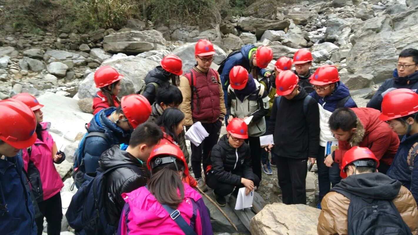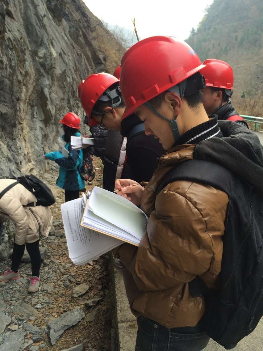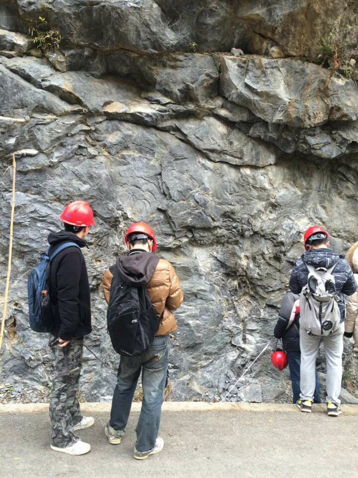 地質實習小組采用3~5人討論的方式進行,成績較好的黨員同志、預備黨員和入黨積極分子們擔任小組組長,充分調動全體組員的積極性,通過合理的分工(四人小組為例:一人記錄,一人丈量厚度,兩人進行相標志收集與最終相敲定,改天再互相交換分工)讓人人都可以參與進來。由小的沉積相標志,結合區域沉積背景,推斷微相與亞相,進而推測出整體的沉積相。同學們頭頂紅色的安全帽,手里緊握地質工作者的三件寶,意氣風發,斗志昂揚,奔走在大山里,河流間,自己動手尋找實際證據來證實自己的猜想。