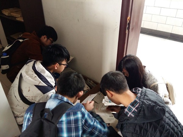 上午十一點半,地空數名志愿者在征得相關管理人員同意后,對散落的近千張的明信片進行整理分類。思學樓ab102收發室的兩個紙箱中,積壓著從2014年至今無人認領的“思念”。來自全國各地的明信片,匯集著相同情感,然而滿滿思念被遺失在了角落。寫有地址的明信片被志愿者們細心挑選出來,為"回家"做好充足準備。